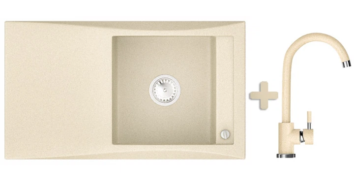 Комплект: мийка гранітна Stella Sirena 80 Бежевий + Кран