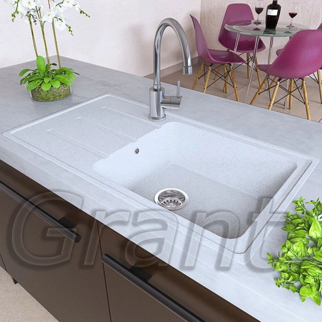 Гранітна плита, мийка Grant Slender Long білий