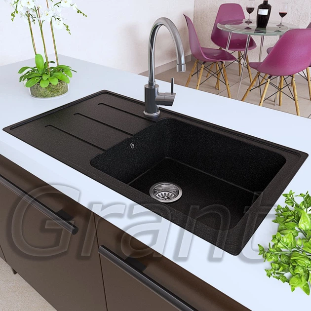 Гранітна плита, мийка Grant slender long чорний