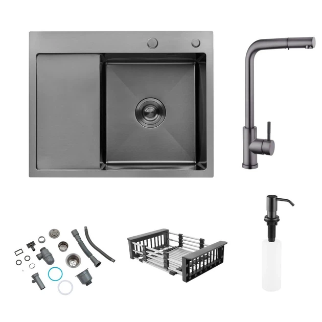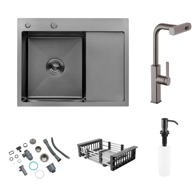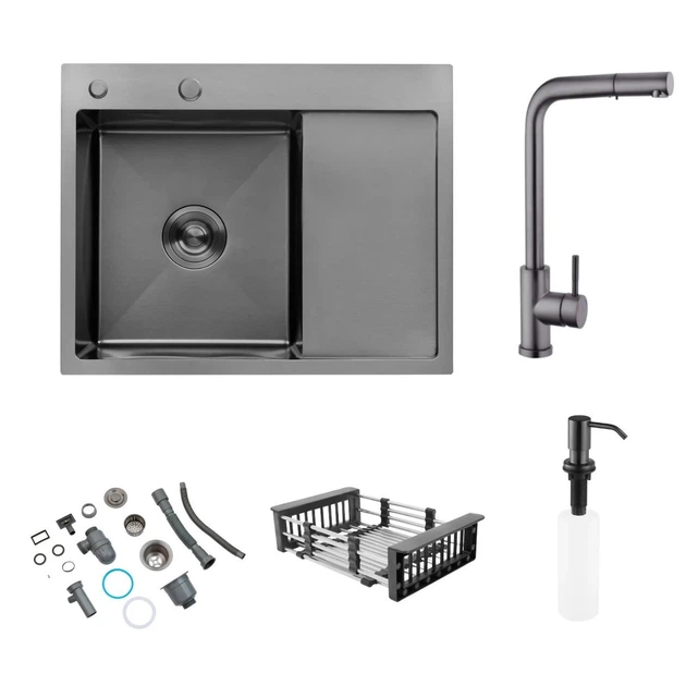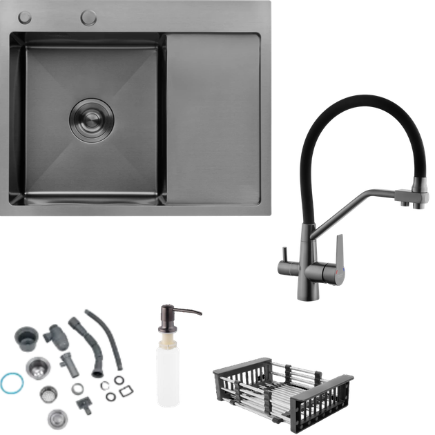 Комплект кухонної мийки Kroner Schwarze - 6350RHM PVD (3.0/1.0 мм)