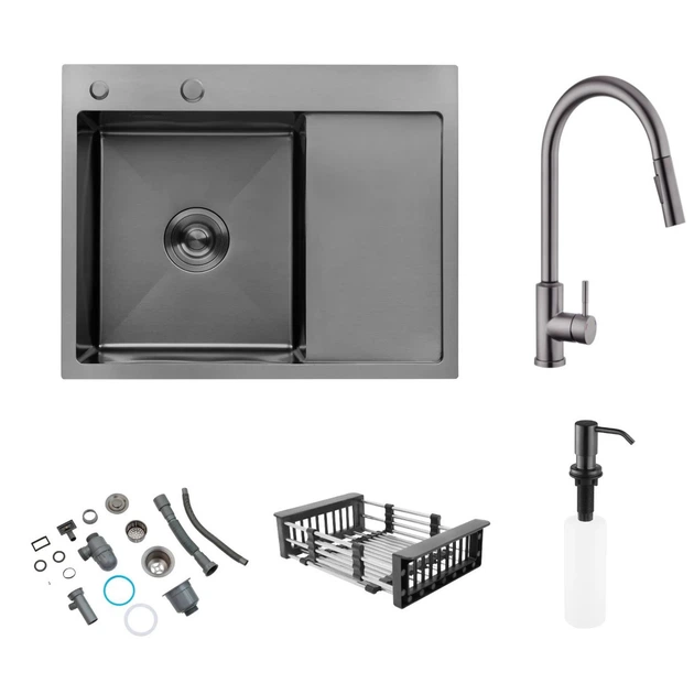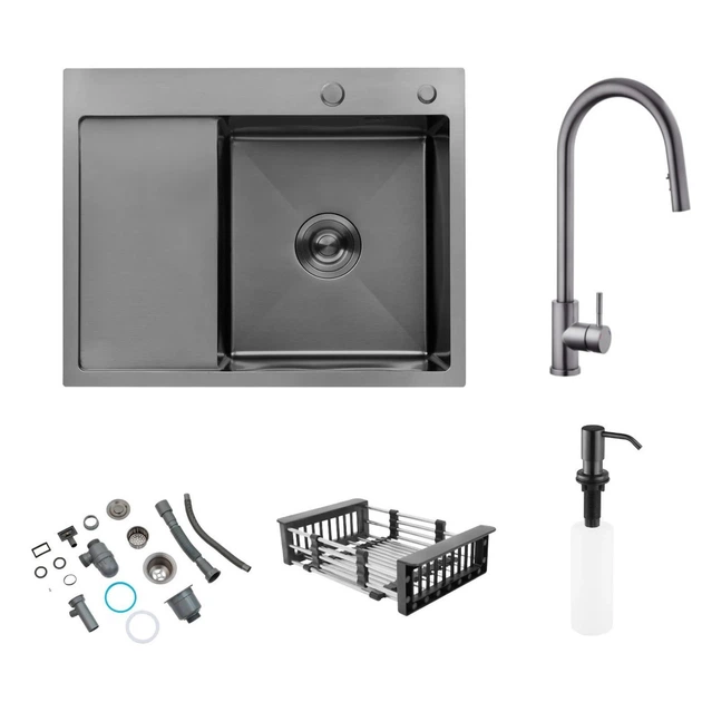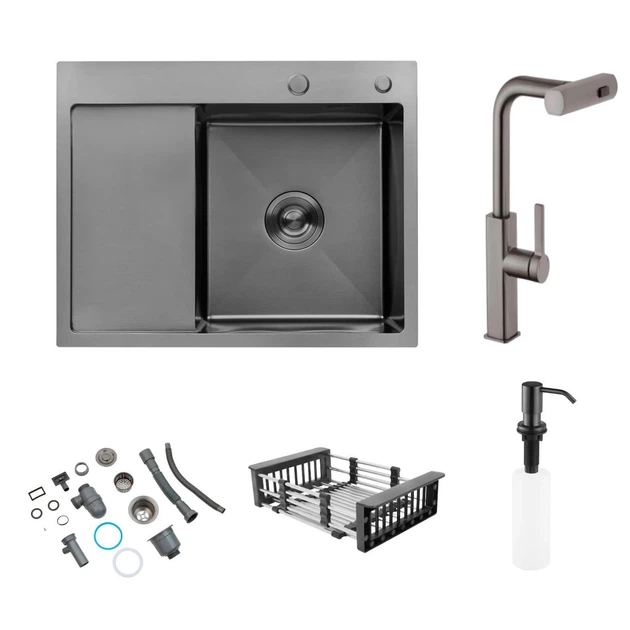 Мийка Kroner Schwarze 6350LHM PVD + змішувач з висувним виливом Kroner — PVD03916 сенсорний (400)