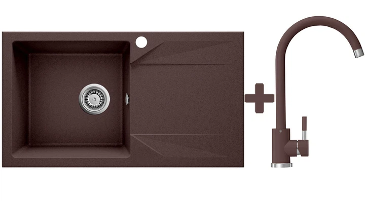 Комплект: мийка гранітна Stella Sanita Compact Коричневий + Кран