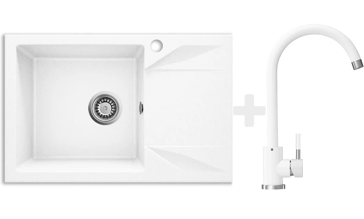 Комплект: мийка гранітна Stella Sanita Compact Білий + Кран