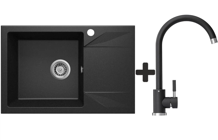 Комплект: мийка гранітна Stella Sanita Compact Чорний + Кран