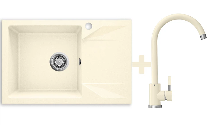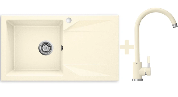 Комплект: мийка гранітна Stella Sanita Compact Бежевий + Кран