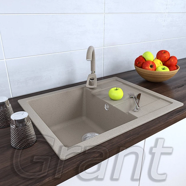 Кухонна гранітна мийка Vector Pool 56*50 silver змішувач+дозатор+сифон