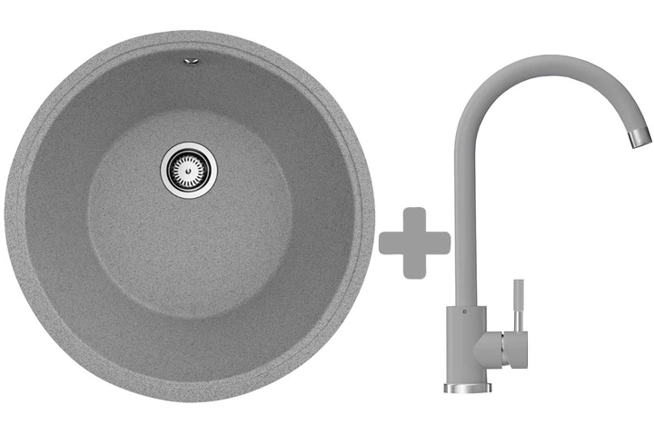 Комплект: мойка гранитная Stella Nova Сірий + Кран