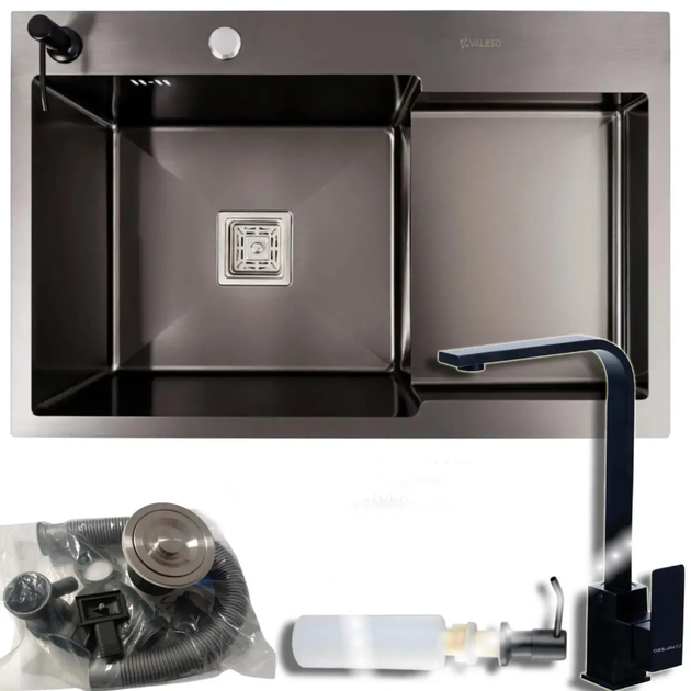 Мийка для кухні CM 78*50C L PVD чорна з поглибленою полицею Handmade (3.0/0.8) — повний комплект