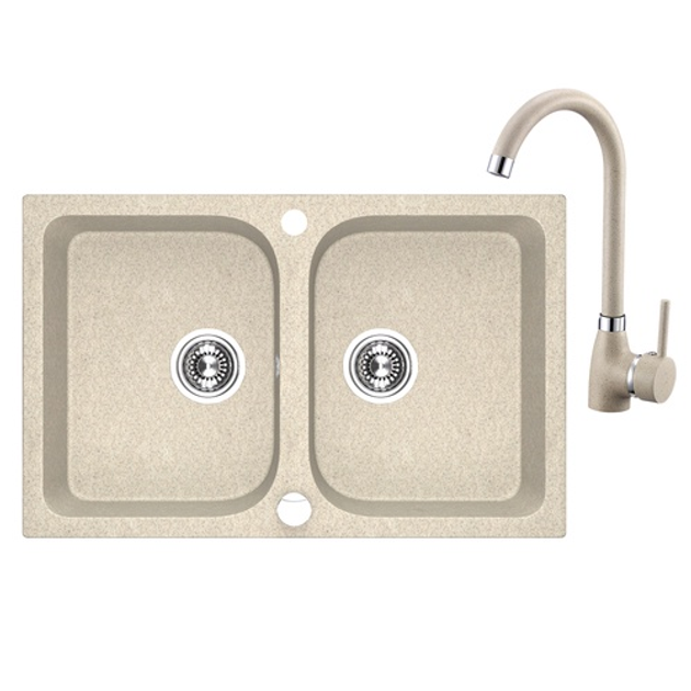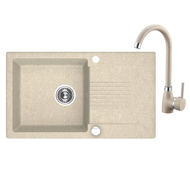 Кухонне миття LAVEO CELIA Бежевий + змішувач