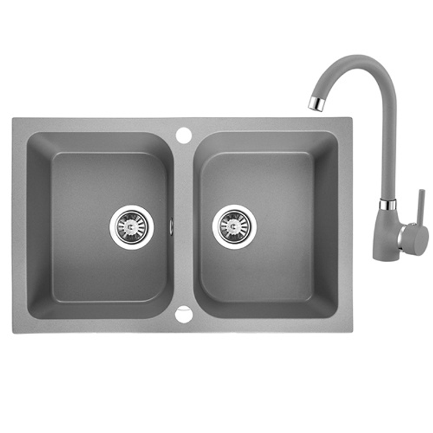Кухонная мийка LAVEO CELIA 2B Сірий + змішувач