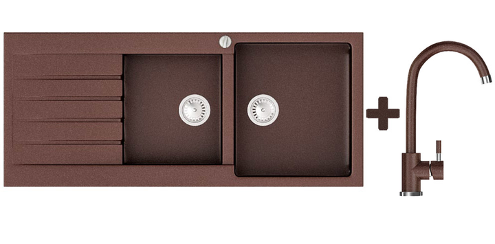 Комплект: мийка гранітна Stella Barselona Коричневий + Кран