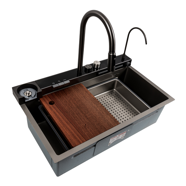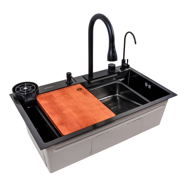 Кухонна мийка 75*46F чорна PVD Valeso Handmade "Водоспад" Fly rain