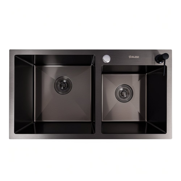 Кухонна мийка 78*43 PVD чорна на дві чаші VALESO Handmade (3.0/0.8)