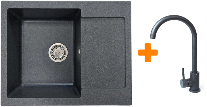 Кухонна мийка ADAMANT Minimal чорна c сифоном Nova + кухонний змішувач