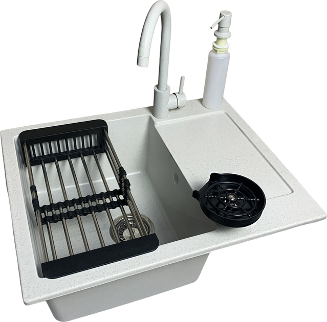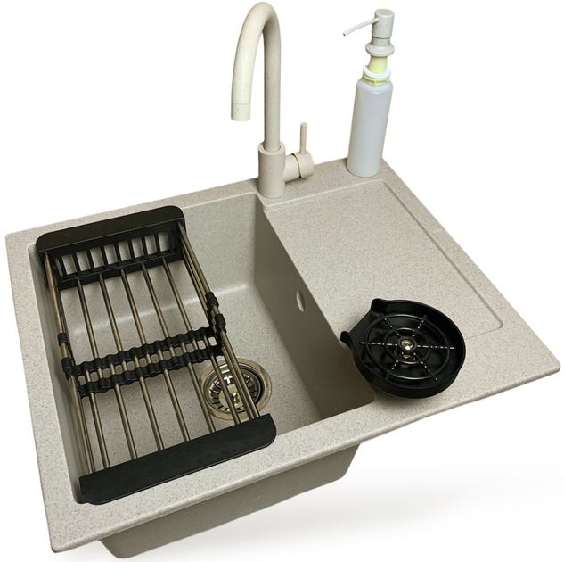 Кухонна мийка ADAMANT Minimal Old-Stone з сифоном + кухонний змішувач + дозатор + ополіскувач склянок + коландер