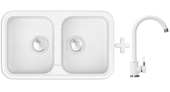 Комплект: мийка гранітна Stella Marin Білий + Кран