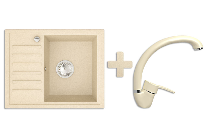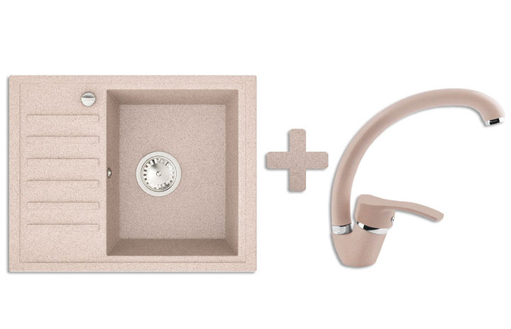 Кухонна мийка гранітна Stella Master бежевий + Кран