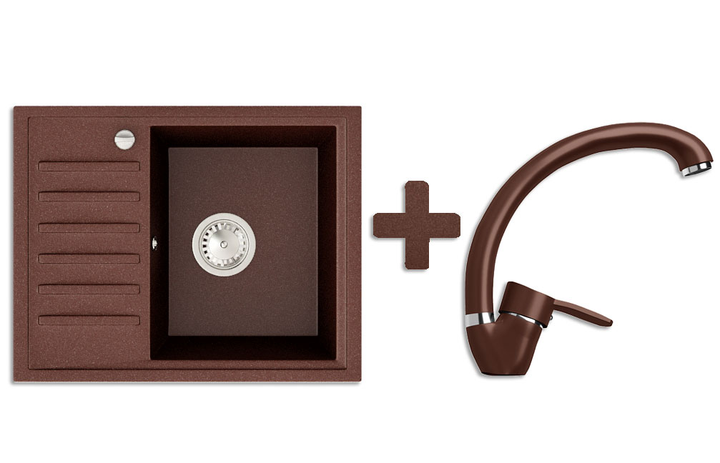 Кухонна мийка гранітна Stella Master коричневий + Кран