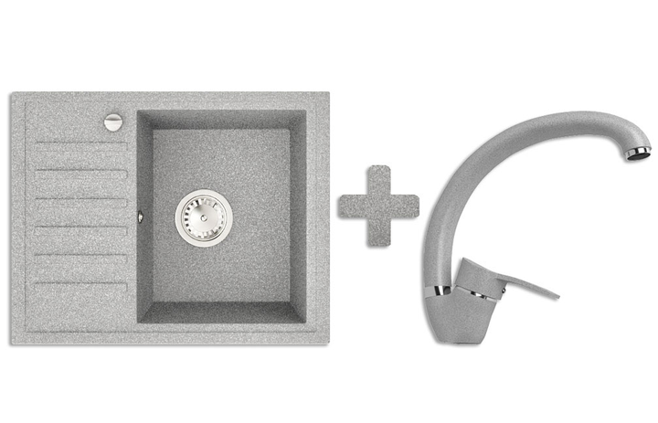 Кухонна мийка гранітна Stella Master сірий + Кран