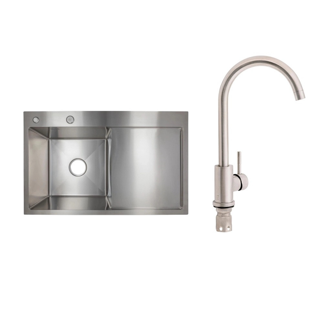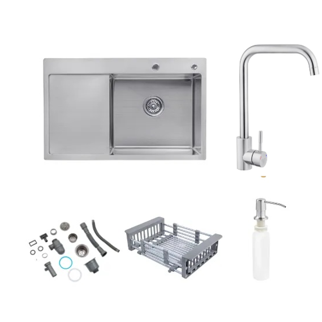 Кухонна мийка Lidz 7849L з крилом + змішувач Lidz Aria 015F (47441)