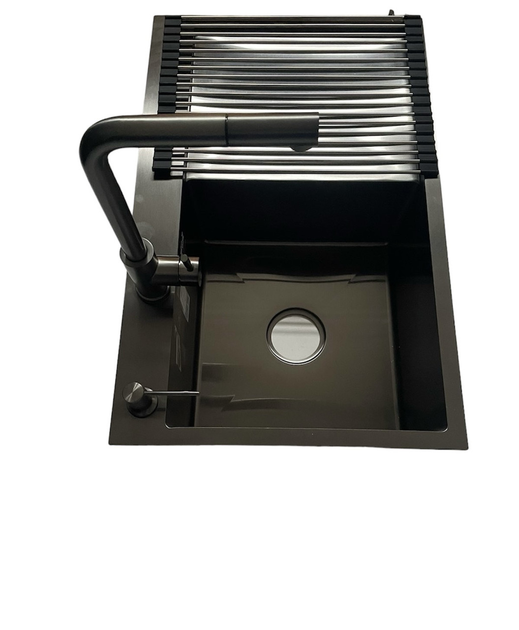 Мийка Kroner 7849LHM ліва чорна та змішувач для кухні з висувним виливом Kroner — PVD03917 (7849,32285)