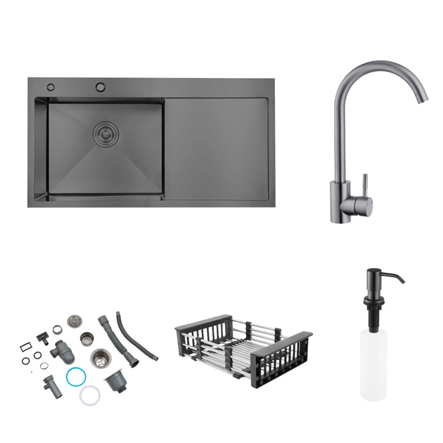 Мийка Kroner 7849LHM ліва чорна та змішувач для кухні Kroner — SCH035PVD (24351.)