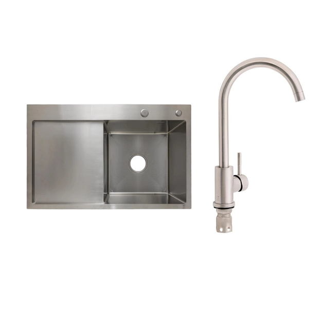 Кухонна мийка Lidz 7849R Brushed Steel + змішувач (47442)