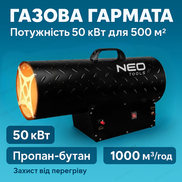 Газова теплова гармата 50 кВт промислова калорифер п’єзопідпал для складу тепловентилятор 1000 м/год сушка