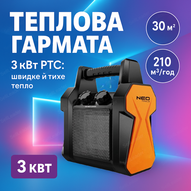 Теплова гармата 3кВт для гаража майстерні тепловентилятор керамічний тен обігрівач 210 м3/год переносний