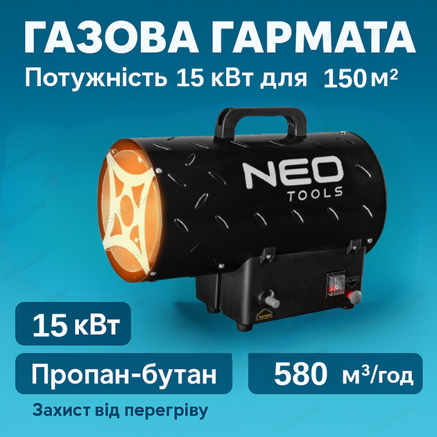 Теплова гармата 15 кВт 0.7 бар газова теплогенератор пропан бутан для складу гаражу обігрівач п’єзорозпал