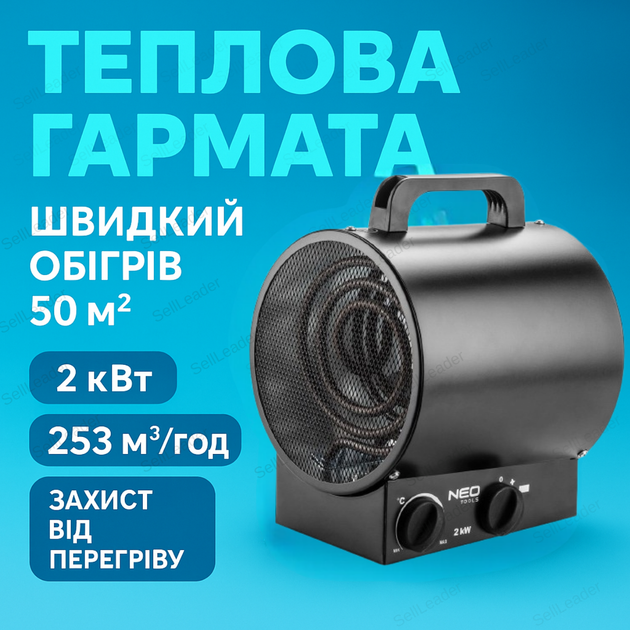 Теплова гармата 2кВт для гаража майстерні тепловентилятор керамічний тен обігрівач 139 м3/год переносний