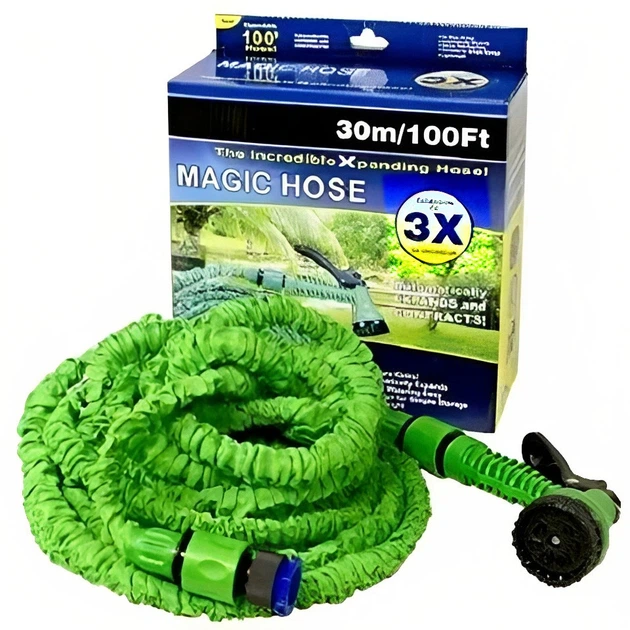 Шланг поливальний Magic Hose розтягується до 30м з насадкою зелений