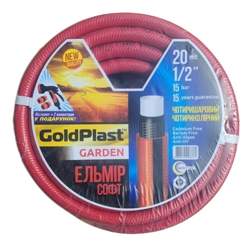 Шланг 1/2" x 20 м для поливу GoldPlast 4-х шаровий + пістолет і 2 коннектора