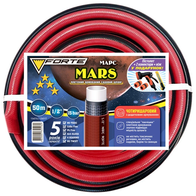 Шланг садовий для поливу Forte Mars 1/2" армований 50 м (BP134516)
