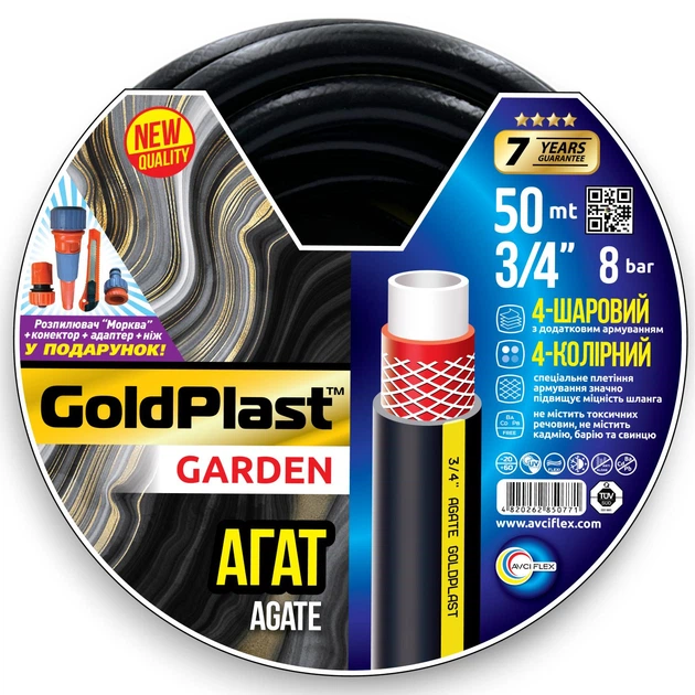 Шланг садовий для поливу 3/4" (19мм) 50м Агат поливальний чотирьохшаровий армований