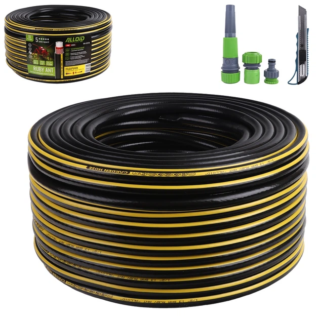 Шланг армований 4-х шаровий "Ruby Ant" 1/2" 50 м + подарунок розприскувач "Равлик" 2 адаптори конектор і ніж Alloid Pro
