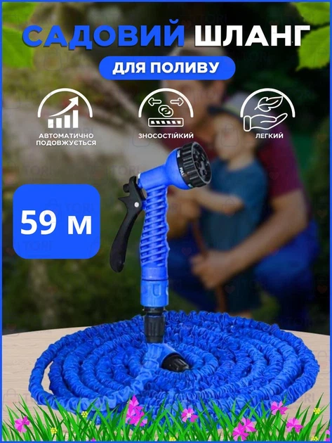 Садовий шланг поливальний, що розтягується, з пістолетом 59 м синій ( 1000305678)