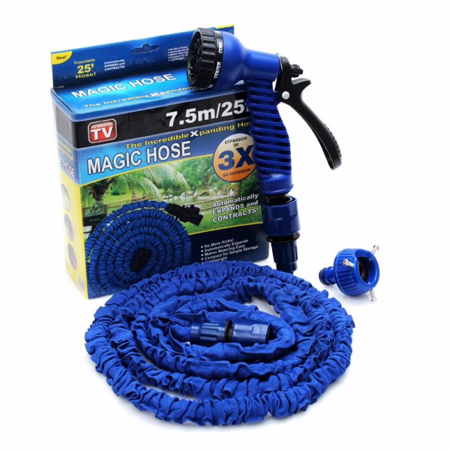 Шланг для поливу Magic Hose (Xhose) розтягується 7,5 метрів з насадкою розпилювачем Синій
