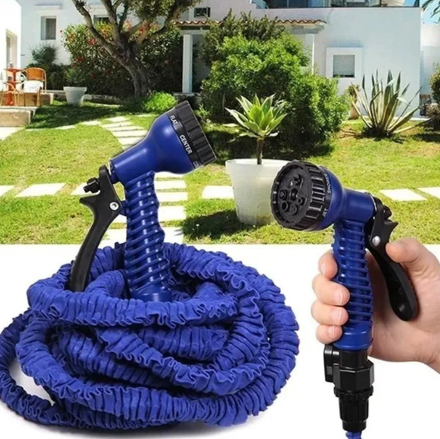 Шланг садовий Magic Hose саморастягівающійся з водним розпилювачем 7 режимів 37,5 м синій