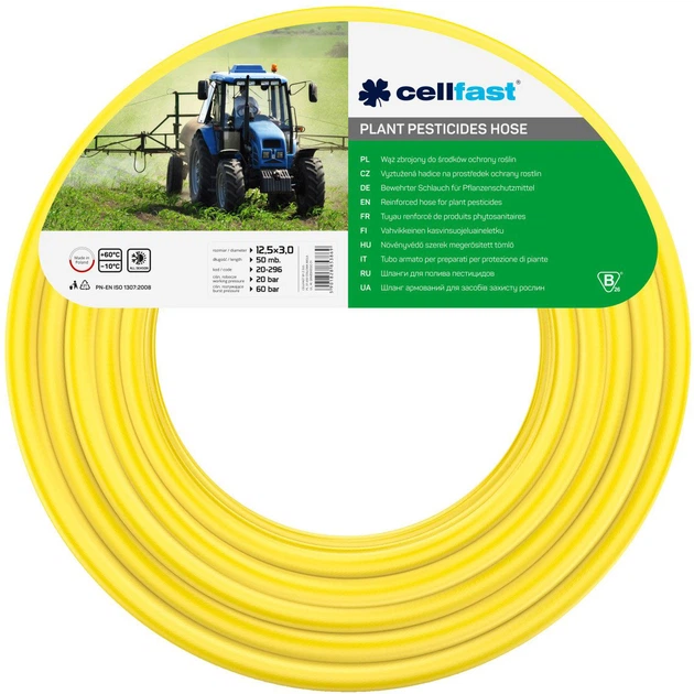 Армований шланг для пестицидів Cellfast 12.5 x 3.0 мм 50 м Жовтий (20-296)