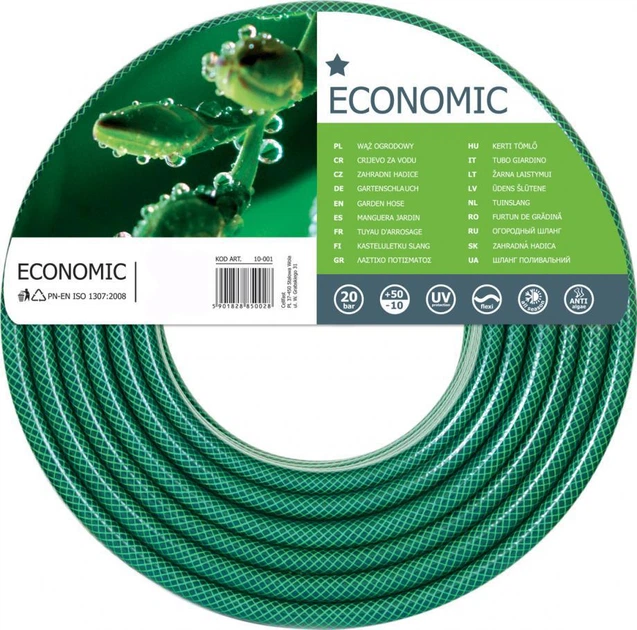 Садовий шланг Cellfast Economic 1" (25 мм) — 50 м, тришаровий армований шланг з поліестерною хрестоподібною оплеткою