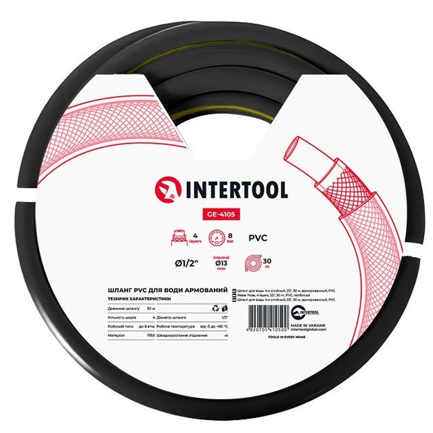 Шланг для води 4 шаровий, 1/2", 30 м, армований, PVC INTERTOOL GE-4105
