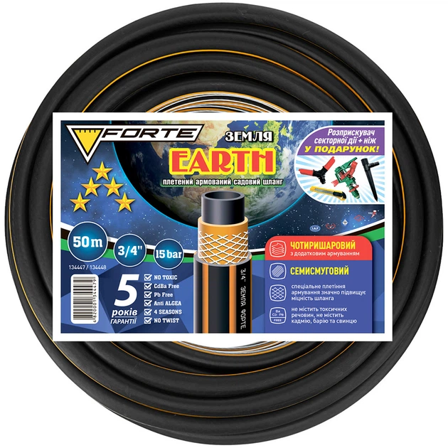 Шланг садовий для поливу Forte Earth 3/4" армований 50 м (BP134447)