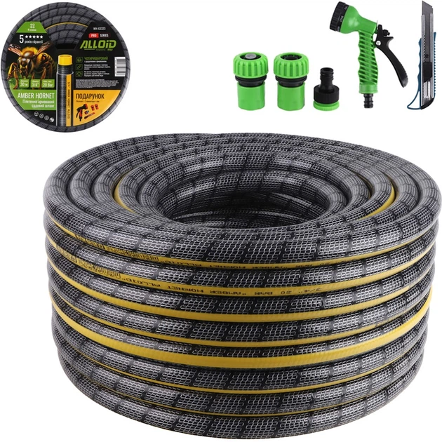 Шланг армований Alloid Pro 4-х шаровий "Amber Hornett" 3/4" 30 м + подарунок (WH-63323)