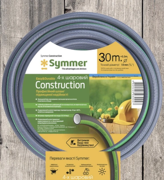 Садовий шланг Symmer Garden "Construction" 3/4" (182,0 мм), 30 м – посилений для інтенсивних робіт