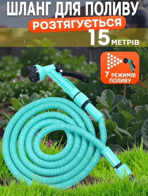 Шланг для поливу садовий Profi EXPANDABLE GARDEN-15 метрів, що розтягується, з розпилювачем води