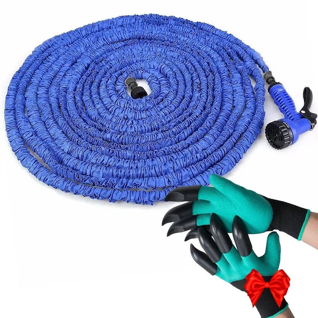 Шланг садовий для поливу Magic Hose (Xhose) 60 метрів, що розтягується, з насадкою розпилювачем Синій