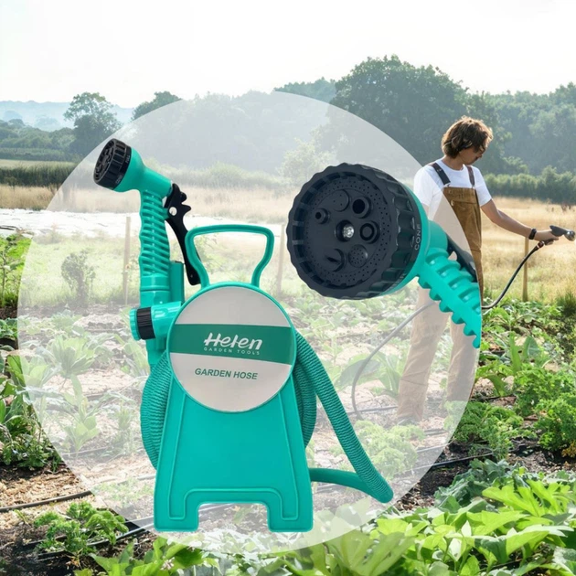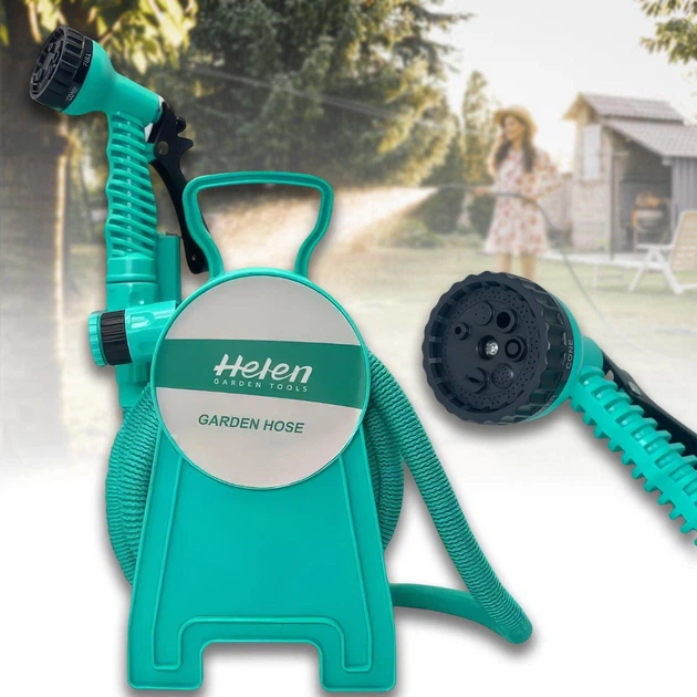 Поливальний шланг, що розтягується 10м на котушці Helen, садовий шланг для поливу з розпилювачем Зелений HLN-10-Green