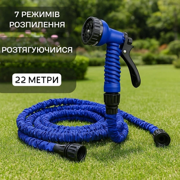 Садовий шланг із 7 режимами 22 м, гнучкий, що розтягується, для поливу та миття, синій