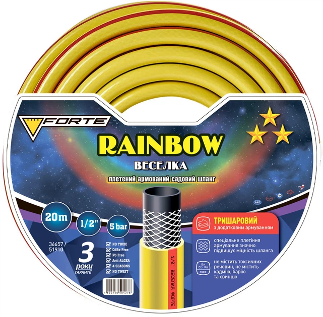 Шланг садовий для поливу Forte Rainbow 1/2" армований 20 м (BP36657)